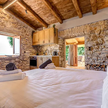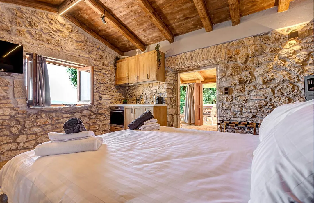 Villan Elysian Stonehouse By The Beach Nisaki med 1 sovrum, som ligger inom 15 minuters promenad från Barbati strand, erbjuder hydromassagebadkar för en avkopplande upplevelse.